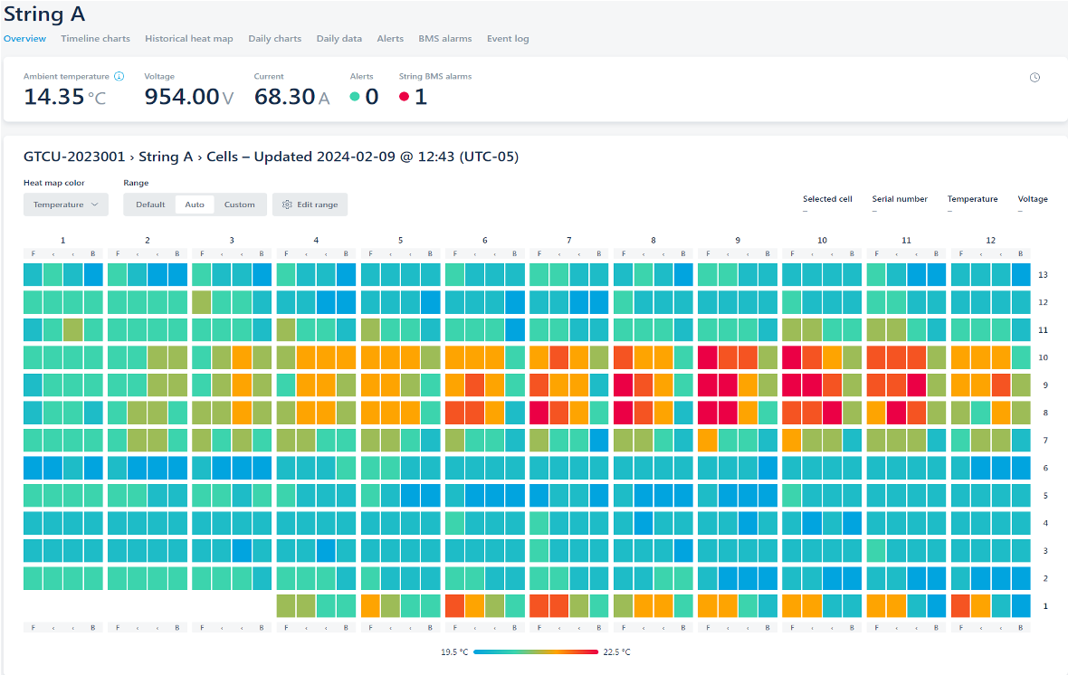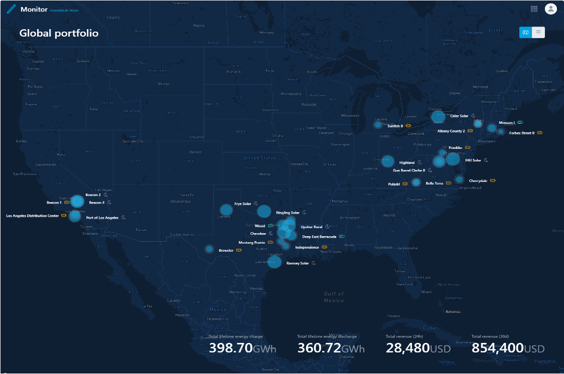 Monitor BESS fleet operating status and performance history. Automated alarms identify unsafe or underperforming conditions and daily reports optimize lifespan.
