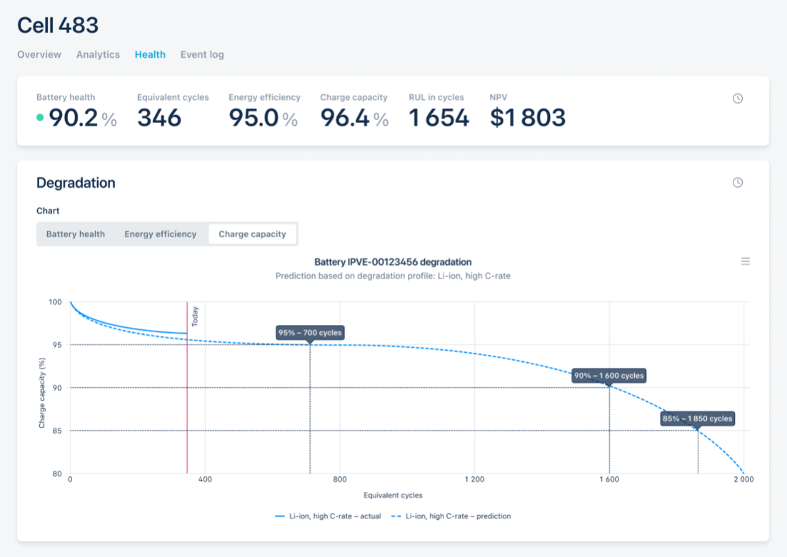 Battery analytics to operate safely at peak efficiency and predict battery performance with improved degradation forecasts.